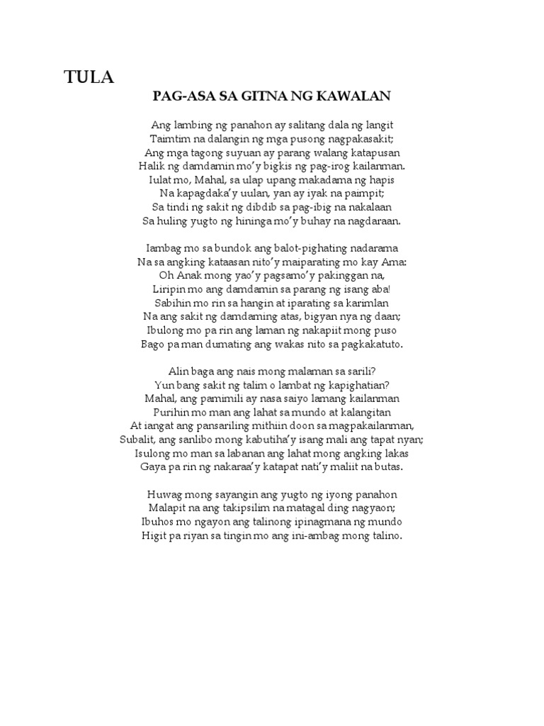 Ang matampuhin filipino love poetry filipinos can refer to a love poem as tula sa pag ibig tula ng pag ibig or tulang pag ibig. Ang kwentong ito ay tungkol sa pagbabalik tanaw ng tagapagsalaysay sa tuwing nakakakita siya ng mga batang nag papalutang ng bangkang papel. Ako ay tulad ng isang saranggola. Madadaig mo ang taas at tagal ng lipad ng guryon nainis ang bata sa kanyang ama.