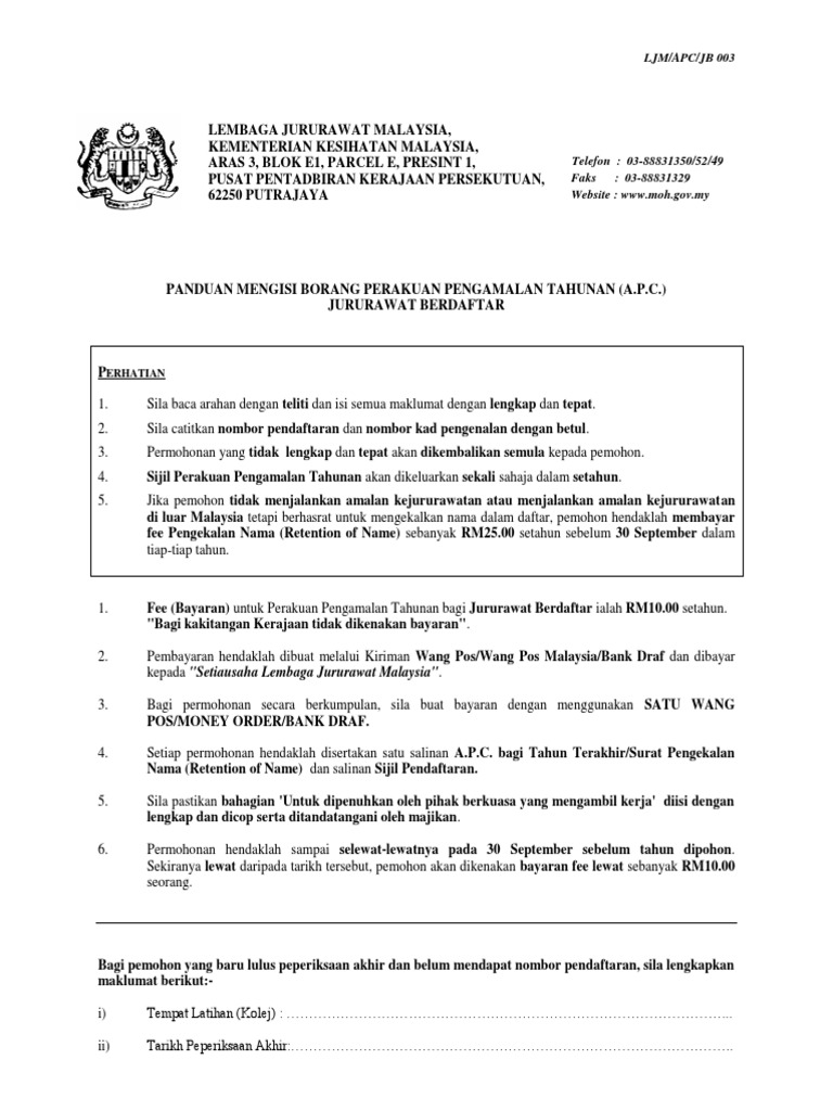 Borang apc jururawat 2019. Lampiran b borang permohonan tanggung kerja dalam format words on 2018 12 17 4 00 00 1183 reads lampiran b borang permohonan tanggung kerja dalam format words. Bagi graduan jururawat yang ingin menduduki peperiksaan ljm mereka perlu mengisi borang permohonan dua bulan sebelum tarikh peperiksaan yang boleh didapati di laman sesawang lembaga jururawat malaysia. Borang permohonan pembaharuan pendaftaran tahunan pembantu perubatan. Contoh soalan lembaga jururawat malaysia ini contoh soalan lembaga jururawat malaysia borang contoh soalan lembaga jururawat malaysia pengekalan contoh soalan lembaga jururawat malaysia contoh soalan lembaga jururawat apc contoh soalan lembaga jururawat phone contoh lembaga politik contoh lembaga pendidikan contoh lembaga keluarga contoh lembaga kemasyarakatan contoh lembaga keuangan.