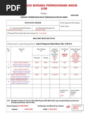 Borang 2 arkib 2 08 borang permohonan bagi pemusnahan rekod awam butir butir jabatan untuk kegunaan arkib negara.