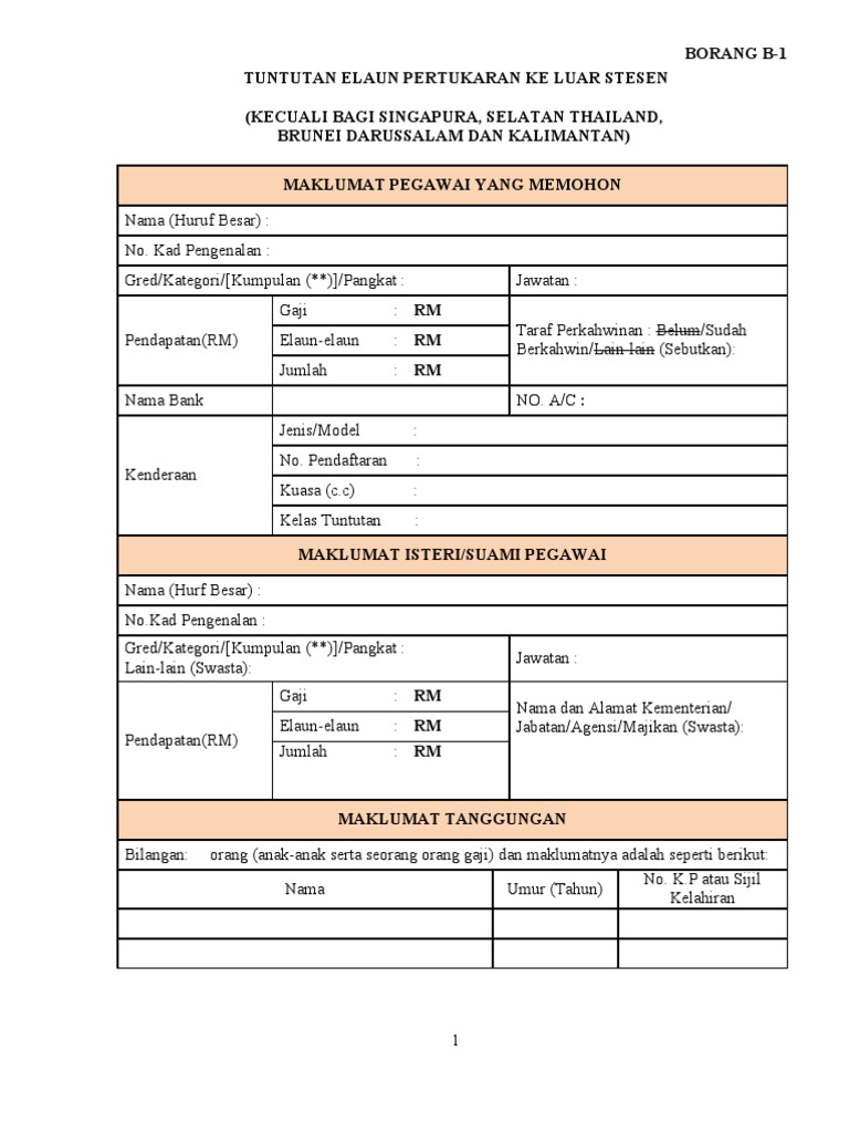 Tuntutan elaun pertukaran ke luar stesen kecuali bagi singapura selatan thailand brunei darussalam dan kalimantan maklumat pegawai yang memohon. Borang lesen perniagaan dan iklan pdf document. Nama huruf besar. B21a 00cukai ke atas yang pertama.