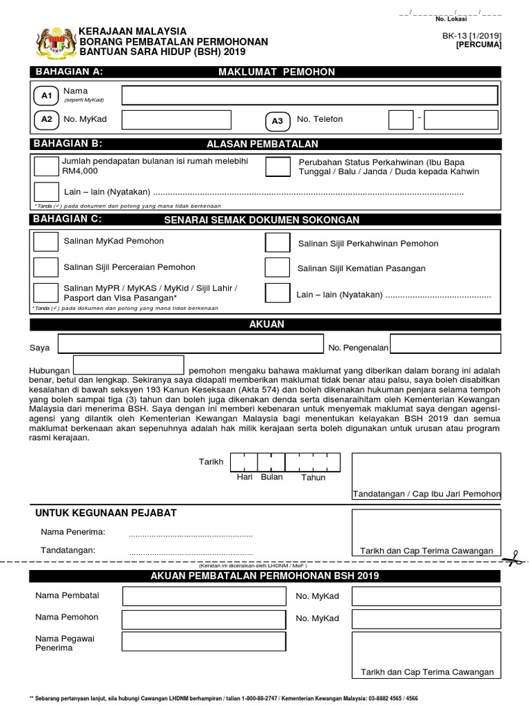 Anda sudah membuat semakan status permohonan bantuan sara hidup rakyat bsh anda. Nota penerangan borang permohonan bantuan sara hidup bsh 2019 1. Hal ini kerana permohonan akan diproses mengikut maklumat dalam borang yang dikemukakan pemohon serta akan diselaraskan dengan data agensi seperti jpn. Borang permohonan bsh 2020 yang boleh dimuat turun.
