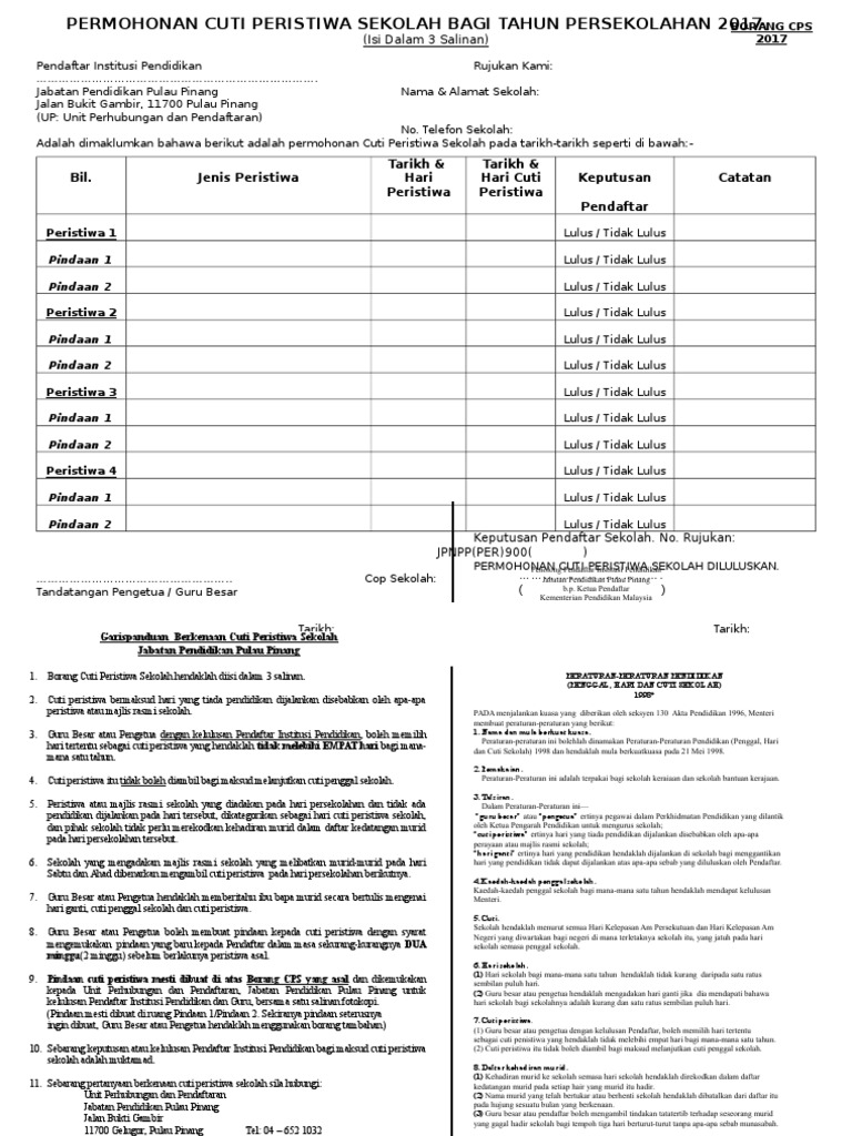 Pdf borang cuti tanpa rekod mengurus kematian ahli keluarga terdekat pp4 2015. Diluluskan cuti bergaji penuh cuti separuh gaji dan cuti tanpa gaji tujuan 1. Nyatakan ctr yang telah diambil dalam tahun semasa. Borang kemas kini februari 2018 ctr bagi pegawai yang dilantik sebagai jurulatih plkn cuti tanpa rekod perayaan vaisakhi cuti menghadiri perbicaraan mahkamah di luar stesen cuti tanpa rekod hari gawai cuti tanpa rekod pesta kaamatan cuti umrah 10.