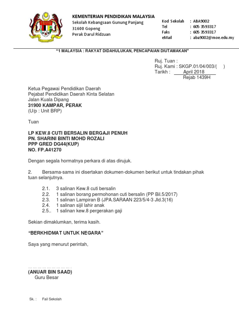 Portal rasmi kementerian pendidikan malaysia. Cuti bersalin pegawai hendaklah mengambil cuti bersalin antara 60 hingga 90 hari dengan menggunakan kemudahan berikut. Pdf contoh surat kebenaran membuka akaun simpanan i di bank rakyat beserta kads1m debit docx 359 kb. 7 1 bagi pegawai selain guru.