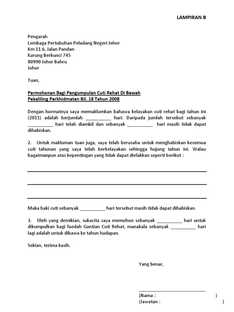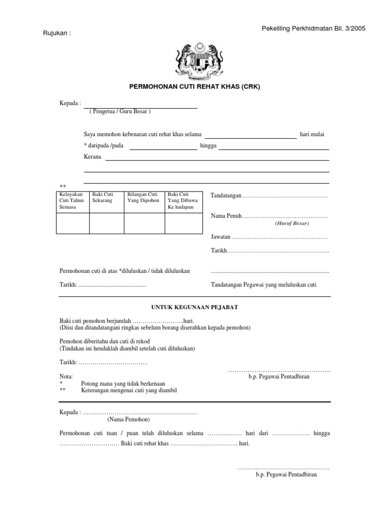 Borang cuti dibawa ke hadapan. Http www ilkap gov my download pekeliling ilkap arahankpbil1 2014 pdf. Muat turun currently selected. Atau b untuk mengumpul kesemua cuti rehat tahunan yang layak sebanyak. Dicatatkan dalam kenyataan cuti pegawai dan borang tersebut hendaklah disimpan di dalam fail peribadinya untuk rujukan sekiranya timbul sebarang persoalan mengenai gcr kelak.