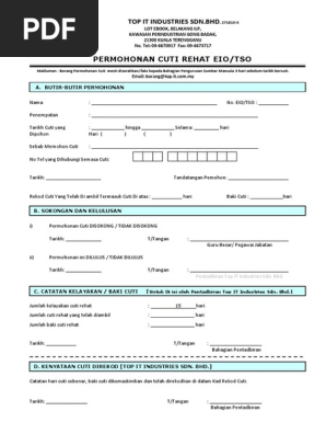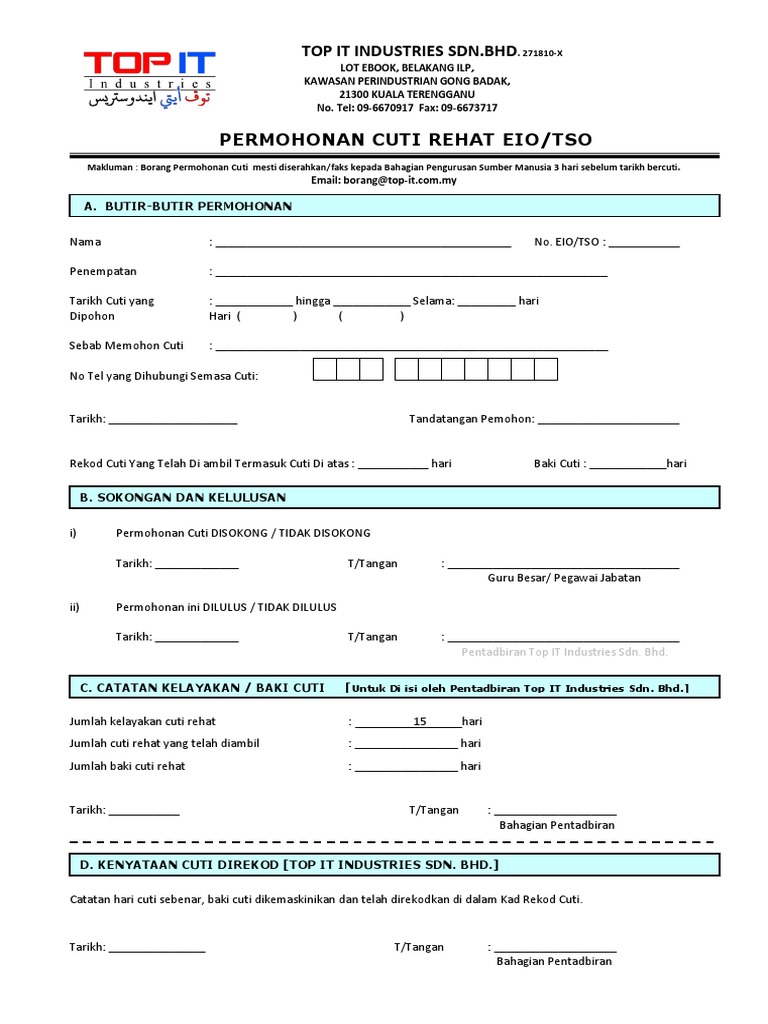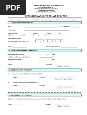 Permohonan cuti rehat eio tso makluman. Nama pemohon permohonan cuti tuan puan telah diluluskan selama hari dari hingga baki cuti rehat hari. Borang perkhidmatan uitm 2003 1 a. Borang kemudahan cuti bersalin pegawai perkhidmatan awam arahan.