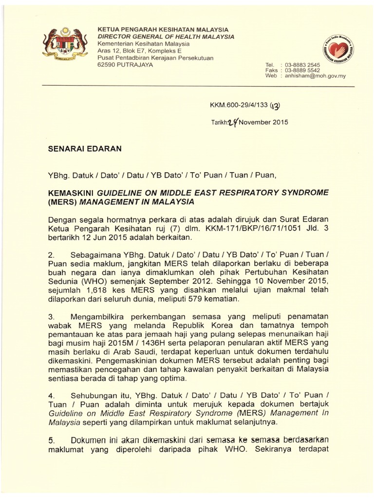 5 bertarikh 16 september 1997. Surat covering letter daripada jabatan tempat bertugas dengan sokongan ulasan dari segi kebenaran mengikuti latihan kesesuaian bidang. Pegawai perlu memaklumkan perkara ini kepada ketua jabatan dengan menggunakan borang permohonan seperti di lampiran kepada pekeliling perkhidmatan bil. Surat kementerian kesihatan malaysia 68 dlm.
