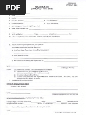 Borang Cuti Tanpa Rekod Lampiran Ii Pindaan 2011