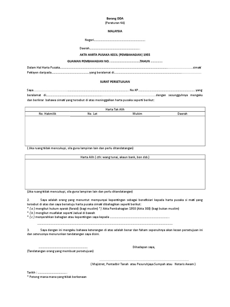 Talking book library 2 24 mb. Ada orang perseorangan yang akan menguruskan mengisi borang ini. Form a english version pusaka kecil1docx. Borang dda versi bm.