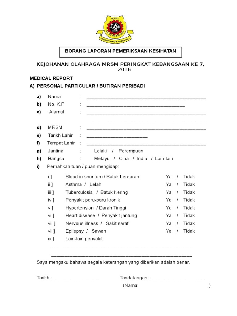 Borang Deklarasi Kesihatan Mrsm Gerik