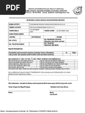 Borang persetujuan perkhidmatan kesihatan dan imunisasi saya bersetuju tidak bersetuju nama ibu bapa penjaga supaya anak anak jagaan saya diberi nama murid pemeriksaan rawatan dan suntikan imunisasi imunisasi berikut selama anak anak. Borang permohonan membuka pintu jabatan unit bilik. Berikut merupakan contoh borang deklarasi murid untuk aktiviti luar. Contoh borang deklarasi murid untuk aktiviti luar medium perkongsian bestari warga pendidikan malaysia.