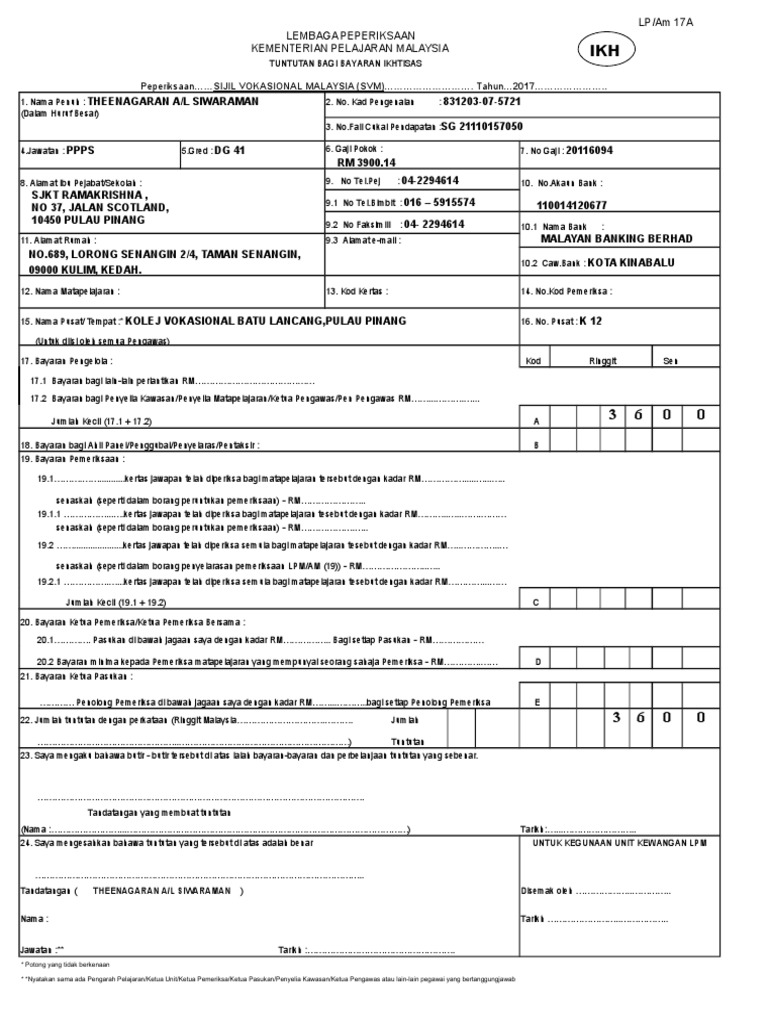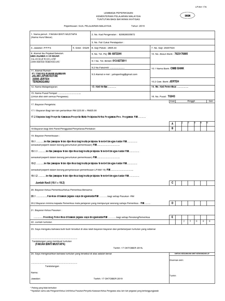 Lp am 17 tnt borang tuntutan perjalanan dan lain lain perjalanan. Borang penyata bayaran pengiriman bungkusan bungkusan. Borang ini perlu diisi oleh pelupus. Lp am 17a ikh borang tuntutan bagi bayaran ikhtisas.