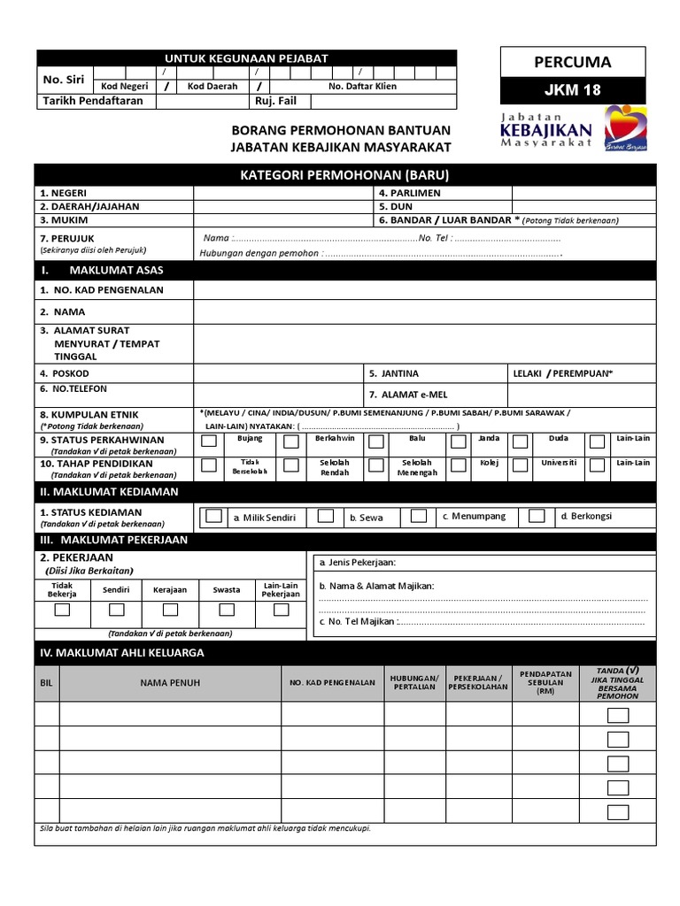 Borang kaji semula bantuan jabatan kebajikan masyarakat kategori kemaskini maklumat i. Jkm menggalakkan pendaftaran orang kurang upaya oku bagi mencapai objektif seperti di bawah. Panduan terkini dikemaskini pada 31 disember 2019 jam 11 31pm. 8 19 2019 2 39 45 pm.