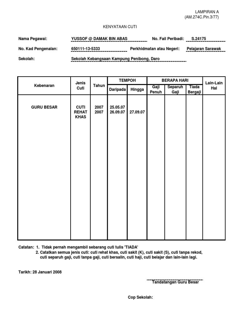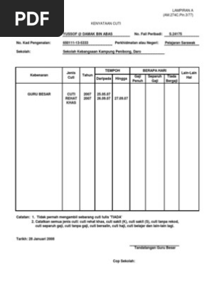 Izzatul rosly created date. Nama pemohon permohonan cuti tuan puan telah diluluskan selama hari dari hingga baki cuti rehat hari. Borang cuti jual cuti rehat khas guru xls document. Http jpnperak moe gov my ppdhilirperak attachments article 3793 borang 20pengumpulan 20cuti 20rehat cuti 20rehat 20khas 20gcr pdf.