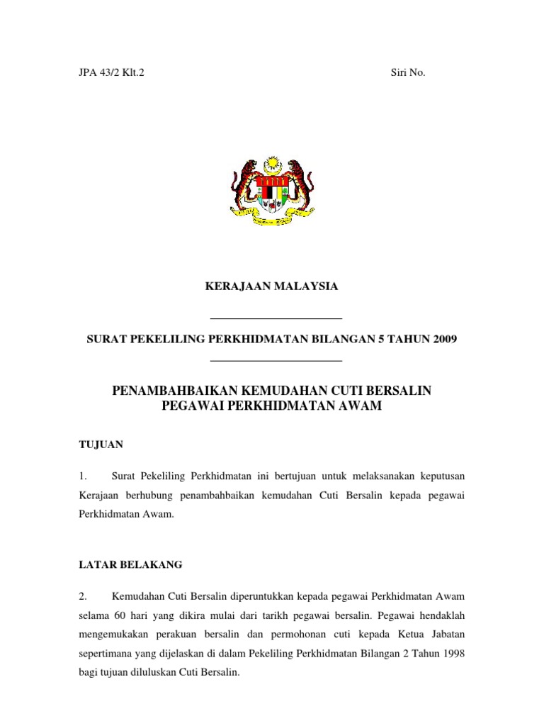Borang kemudahan cuti bersalin pegawai perkhidmatan awam arahan. Pekeliling perkhidmatan bilangan 5 tahun 2017. Hari bahagian ii.