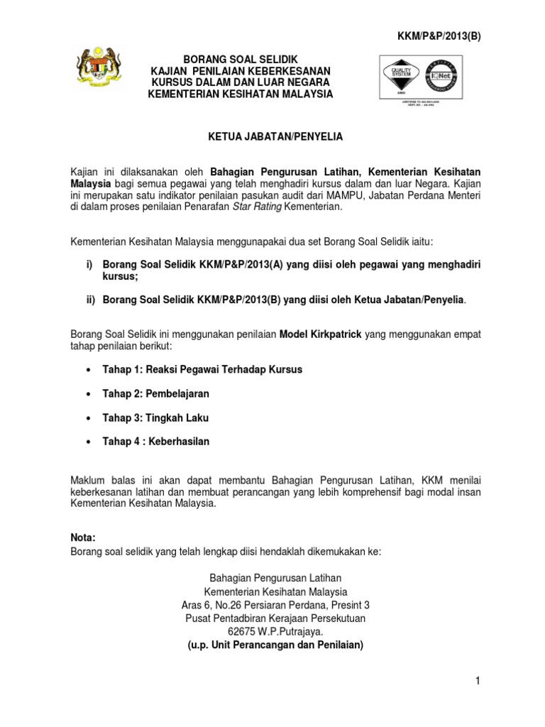 Borang maklum balas kursus kkm. Penilaian keberkesanan kursus terhadap peserta. Manakala bagi aduan kategori kompleks surat maklum balas. Borang permohonan baru 1govnet bpm kkm ver1. Kepada guru besar sk sjkc sjkt daerah tangkak seperti di lampiran untuk makluman dan tindakan pihak pengurusan sekolah.