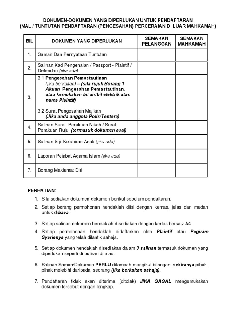 Borang pengesahan cerai luar mahkamah. Mahkamah tinggi malaya. Mahkamah rayuan malaysia. Muat turun borang 1278 no title sumber rujukan. Untuk maklumat lanjut encik boleh hubungi pn.