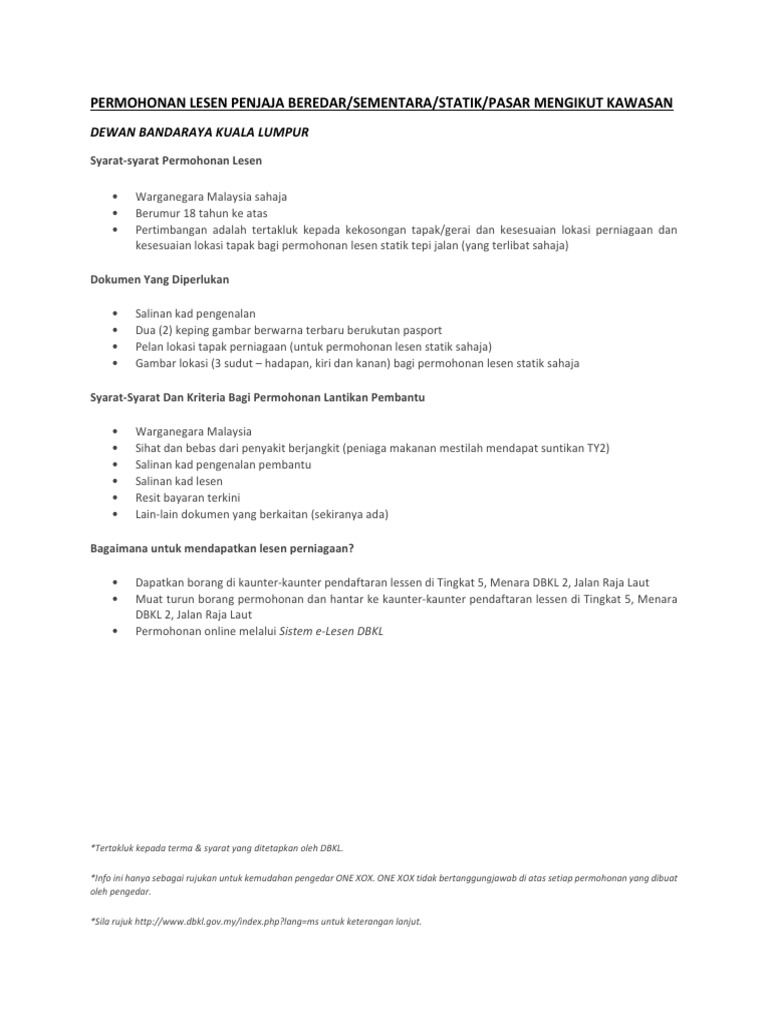 Mendapatkan borang permohonan dan membuat pendaftaran di kaunter kaunter pendaftaran lesen di. Jabatan pelesenan pembangunan perniagaan dewan bandaraya kuala lumpur tingkat 4 5 menara dbkl 2 jalan raja laut 50300 kuala lumpur tel. Permohonan lesen boleh dibuat melalui cara cara berikut mendapatkan borang permohonan dan membuat pendaftaran di kaunter kaunter pendaftaran lesen di. Keperluan bagi permohonan ini mungkin berbeza mengikut pihak berkuasa tempatan masing masing.