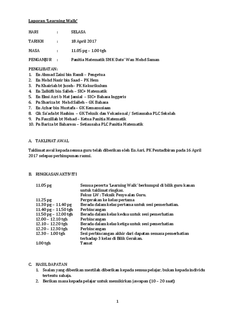 Strategi tips borang pelaksanaan plc plc adalah merupakan singkatan kepada professional learning community atau komuniti pembelajaran profesional. Contoh pelaporan learning walk docx.