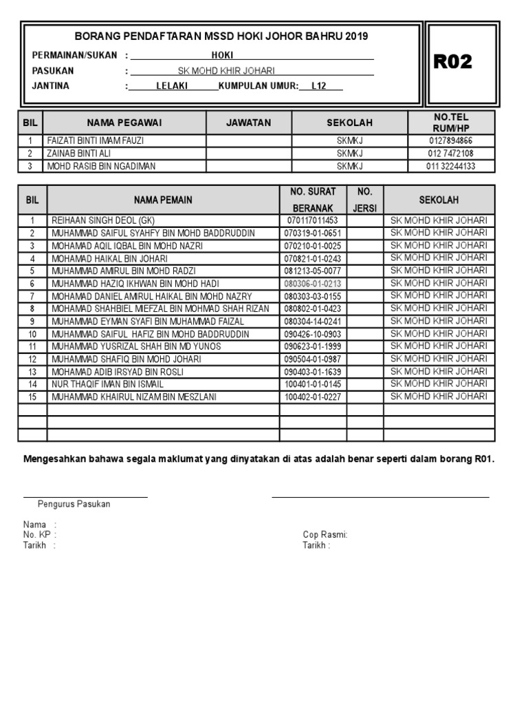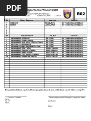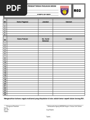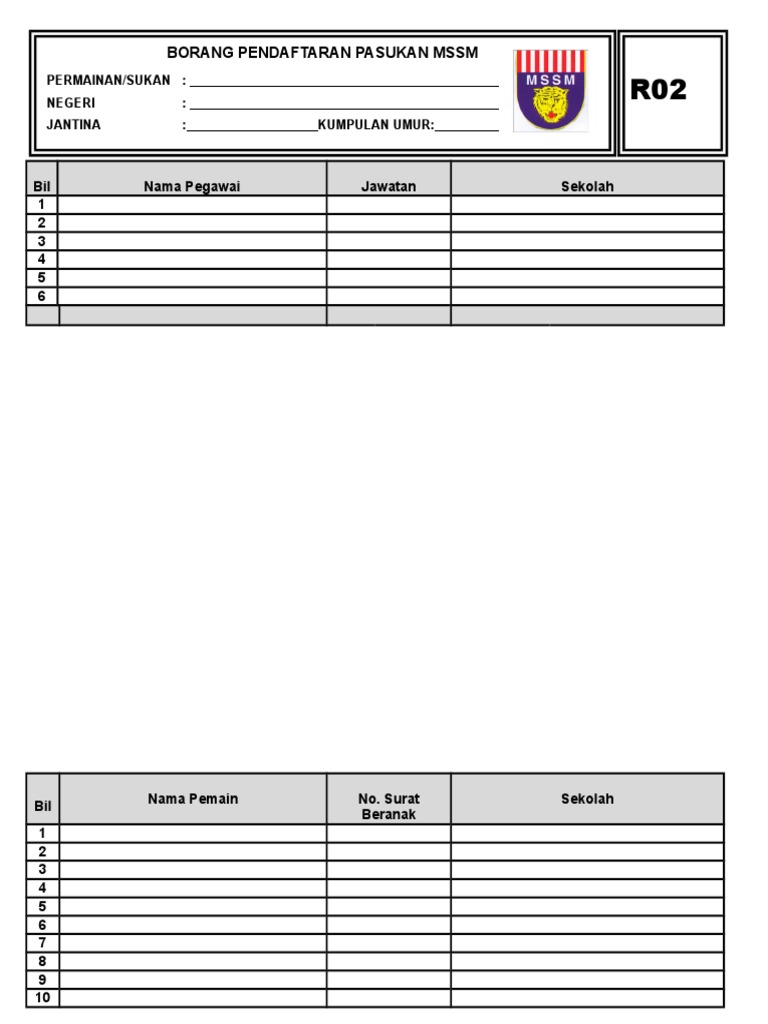 Borang pendaftaran individu permainan sukan. Borang r01 dan borang r02. Ogos 13 ogos 2012 isnin hari raya puasa 19 20 ogos 2012. 4 borang r02 perempuan bawah 12.