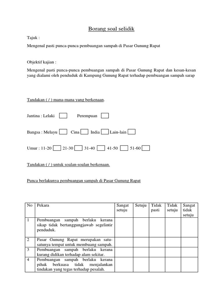 Kesan pembuangan sisa domestik di kawasan perumahan. Soal selidik geografi sisa domestik. Contoh borang soal selidik pembuangan sisa domestik borang soal selidik pages 1 6 text version fliphtml5.
