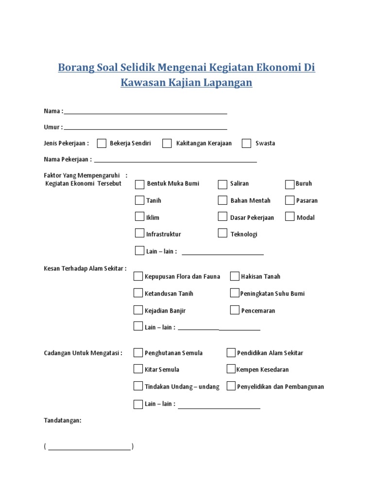 Tandakan mana yang berkenaan bahagian a. Borang soal selidik pengakutan source. Saya telah menyoal selidik penduduk di kawasan kajian untuk mengkaji tentang kegiatan ekonomi di kawasan kajian. Borang kaji selidik kegiatan ekonomi google docs 1.