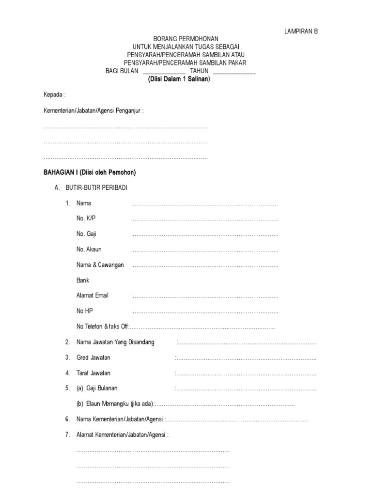 31 disember 2018 mukasurat. Borang ini hanya perlu dilengkapkan oleh penceramah dan fasilitator persendirian yang bertauliah yang bukan melalui akademi pencegahan rasuah malaysia maca sprm atau institut integriti malaysia iim. Tarikh kemaskini 06 november 2020. For best view please use internet explorer 10 and above with resolution 1280 x 800 pixel.