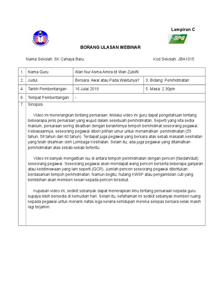 Download as doc pdf txt or read online from scribd. Save save borang ulasan webinar doc for later. Tentu kawan kawan tercari cari borang untuk dijadikan sebagai bukti kita telah mengikuti webinar dalam splkpm. 2 30 masa tamat.