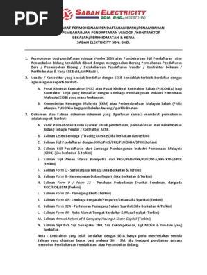 Panduan pendaftaran pembekal sabah electricity sdn a surat. Sila pastikan borang permohonan telah diisikan dengan lengkap. Sila pastikan dokumen yang diberikan adalah terkini betul lengkap dan tersusun. Borang cp55 borang cp55a borang cp55b borang cp55c borang cp55d borang cp55e dan borang cp55f.