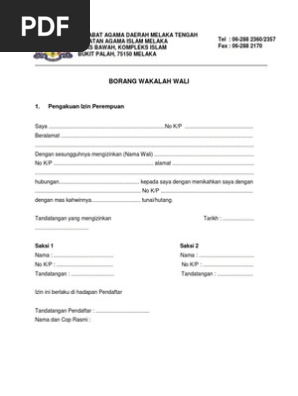 Sedia maklum permohonan kebenaran berkahwin online pada masa ini hanya meliputi permohonan yang dibuat di negeri negeri sembilan melaka perlis kedah perak dan wilayah persekutuan. Ogos 30 2020 12 muharram 1442 solat. Tp perlukan mase seminggu utk proses borang wali katenye. Dalam borang nikah aminah ditulis nama wali ialah amin abangnya yang sulong tetapi dalam wakalah nama wali yang menyerahkan hak wakalah kepada imam ialah ali abang yang kedua.