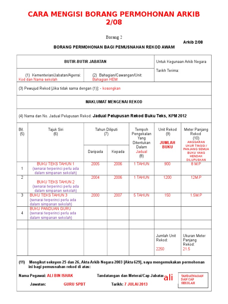 Cara cikgu kb isi borang arkib 2 08 saya telah merujuk kpd jpn selangor terkini. Segala dokumen dan borang hanya perlu diisi secara online. Lampiran 2 contoh arkib 2 08 borang permohonan bagi pemusnahan rekod awam. Borang permohonan bagi pemusnahan rekod awam arkib 2 08 borang permohonan bagi pemusnahan rekod elektronik arkib 3 08 borang permohonan bagi pemusnahan rekod kewangan dan perakaunan kewangan arkib 4 08 borang permohonan bagi pelupusan rekod pandang dengar arkib 8 08.