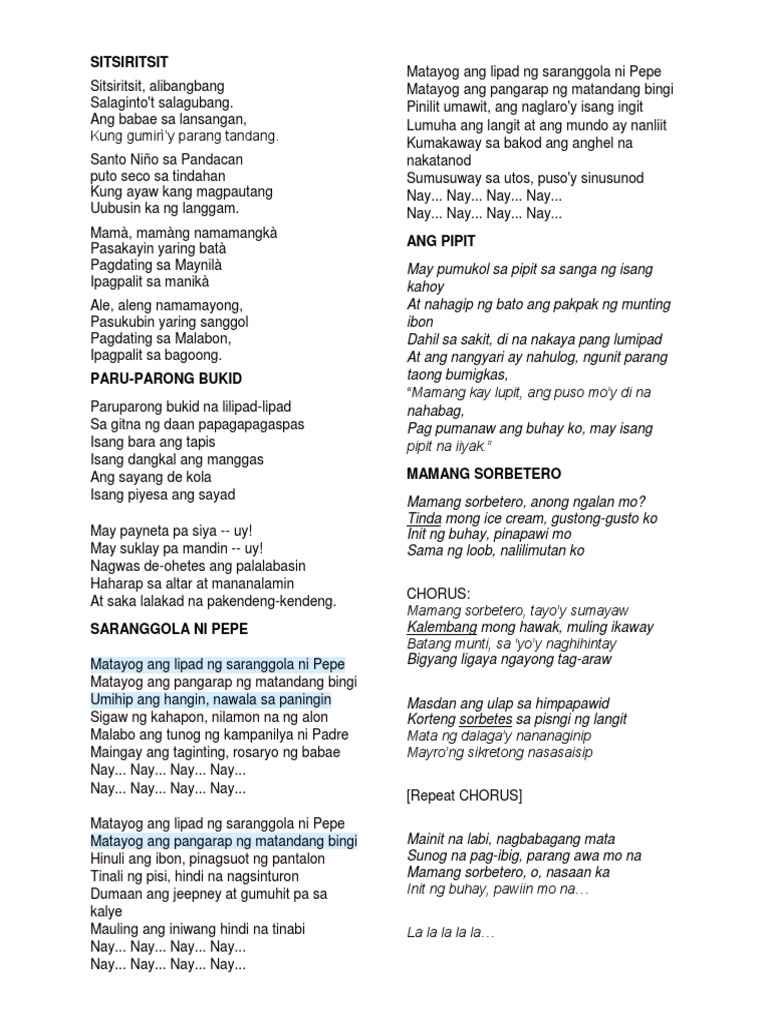 The first stanza is about the philippines during the spanish regime the images like kampanilya padre and rosaryo all pertain to the the catholic religion the spaniards taught us to embrace. Matayog ang lipad ng saranggola ni pepe matayog ang pangarap ng matandang bingi umihip ang hangin nawala sa paningin sigaw ng kahapon nilamon na ng alon malabo. Matayog ang lipad ng saranggola ni pepe matayog ang pangarap ng matandang bingi umihip ang. Celeste legaspi lyrics saranggola ni pepe matayog ang lipad ng saranggola ni pepe matayog ang pangarap ng matandang bingi umihip ang hangin nawala sa paningin sigaw ng kahapon nilamon na ng alon malabo ang tunog ng kampanilya ni padre maingay ang taginting rosaryo ng babae.
