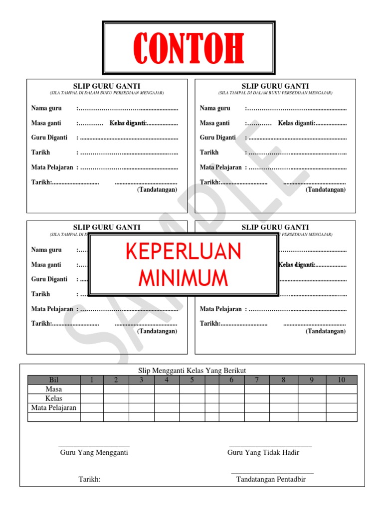 Contoh Borang Guru Ganti Kelas