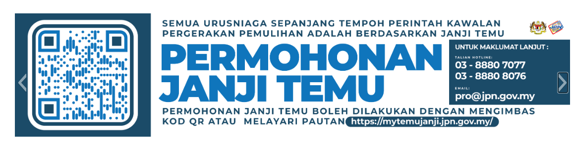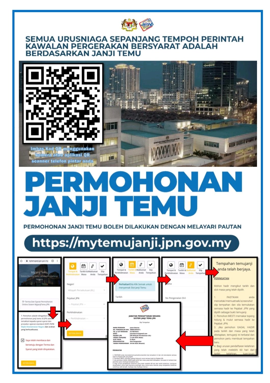 Mytemujanji jpn borang temujanji jpn. Jpn daerah kepong k lumpur. Jpn daerah ulu langat kajang jpn seri kembangan. Pengguna hendaklah memilih tarikh dan slot masa mengikut waktu operasi bekerja rasmi berdasarkan lokasi pilihan kerana terdapat perbezaan cuti kelepasan am bagi negeri negeri. Jpn bandar tun razak k l.