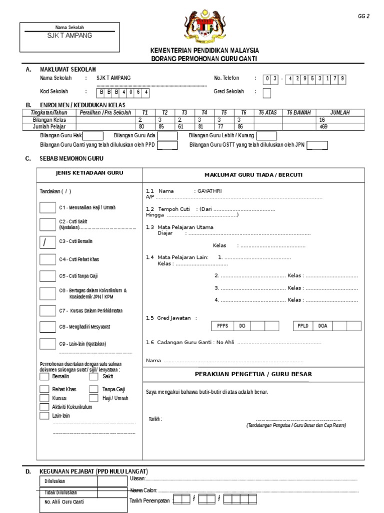 Pertanian adalah ditangguhkan sehingga satu kaedah penyelarasan dibuat oleh pejabat tanah dan galian selangor ptgs namun penguatkuasaannya masih bergantung pada arahan bertulis oleh ptgs harap maklum. Permohonan kerja guru ganti ni tak banyak taw. Pejabat pendidikan daerah ppd. Permohonan untuk menjadi guru ganti bagi sesi 2013 telah dibuka.