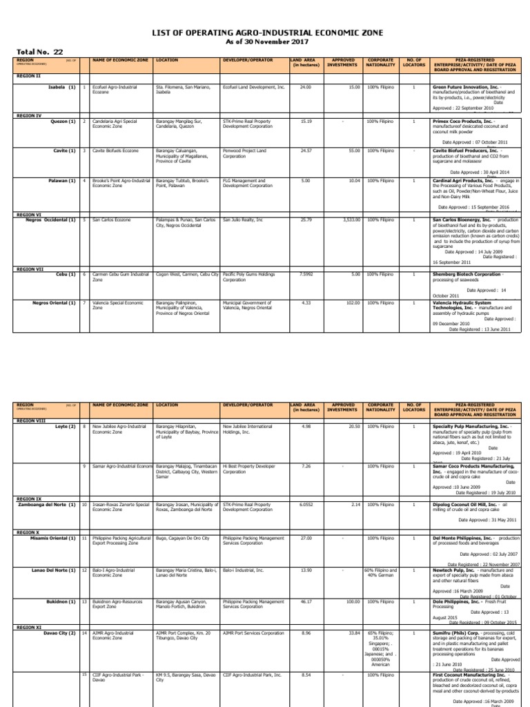 Sarangani agro industrial ecozone. This is the list of special economic zones sez in the philippines created and mandated by the congress of the philippines through legislative enactments both by the house of representatives and philippine senate the list includes general sezs and the more specific free trade zones and free ports managed either by the philippine economic zone authority or held privately. Other agro investors in various ecozones include alsons aquaculture corp. Kamanga agro industrial ecozone development corporation sarangani agro industrial eco zone municipality of alabel province of sarangani alsons development investment corporation sarangani 2 peza registered enterprise activity date of peza board approval and regsitration region no. Industrial estates ies export processing zones epzs free trade zones.