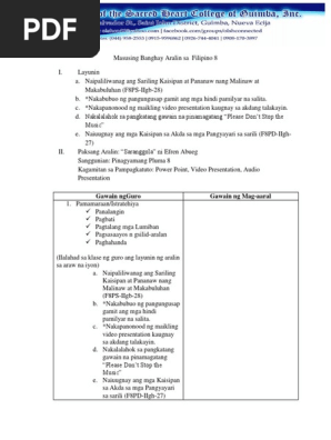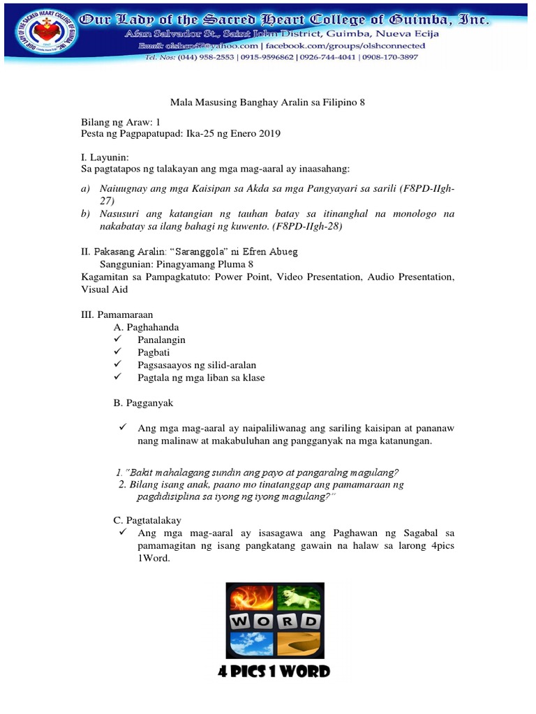 Hindi salapi at kapangyarihan na kung minsa y parang bulang nawala ang pinakamabuting pamana ng magulang sa anak. Ano ang denotatibo ng kalagin. Pwede po bang mag download ka iba pang banghay aralin na may tula at may ibat ibang stratehiyang gamit. 5 letters nag tatapus sa letterang a bakit naging sawimpalad si elias.