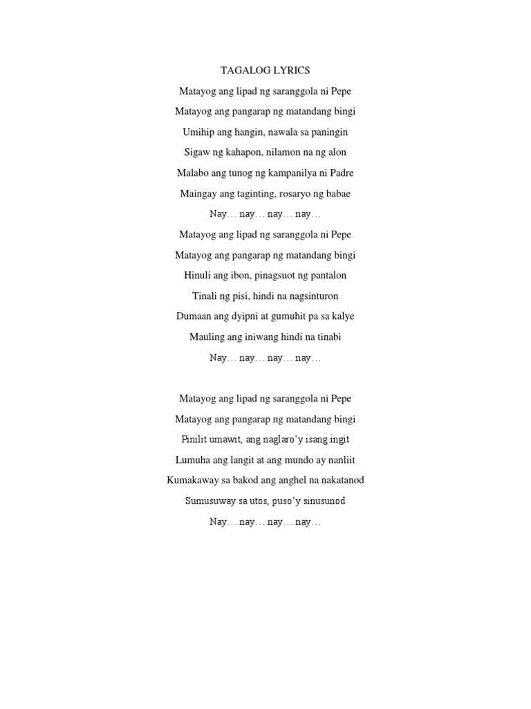 Adopting the title saranggola ni pepe the activity started off with by mr. Wishing you a whole year of happiness. Celeste legaspi saranggola ni pepe lyrics. Matayog ang lipad ng saranggola ni pepe matayog ang pangarap ng matandang bingi umihip ang hangin nawala sa paningin sigaw ng kahapon n.