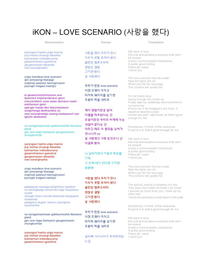 Read or print original 사랑을 했다 love scenario lyrics 2020 updated. Shwib ge manna shibge heeojineun keureon sarang ttawon gwanshim obseo. A pretty good ending. Neoreul gatgesseo jogeumssik naegero wa.