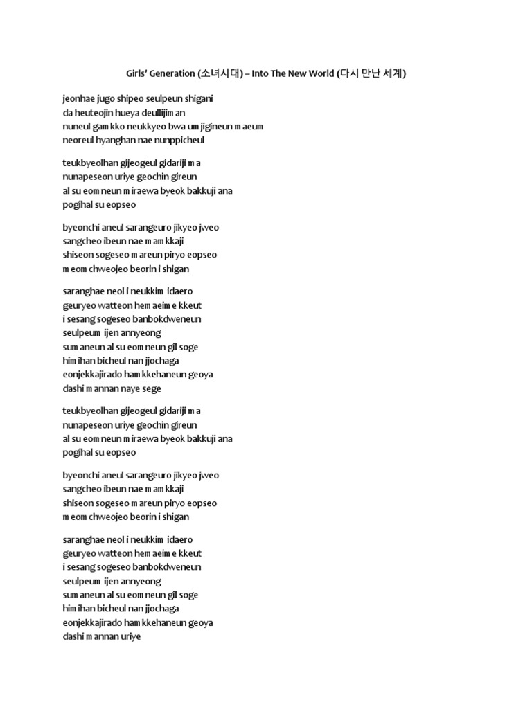 More on genius into the new world romanized track info. I sungane neukkim hamkkehaneun geoya dashi mannan uriye. Saranghae neol i neukkim idaero geuryeo watdeon haemae ime kkeut i sesang sogeseo banbokdweneun seulpeum ijen annyeong sumaneun al su eomneun gil soge hwimihan bicheul nan jjochaga eonjekkajirado hamkke haneun geoya dashi mannan naye segye. Sumanheun al su eobtneun gil soge huimihan bicheul nan jjochaga eonjekka jirado hamkke haneungeoya dashi mannan naui segye.