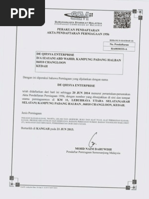 Jangan risau tidak perlu ke cawangan ssm lagi dan menunggu giliran kini korang boleh mendapatkan sijil perniagaan ssm bussiness certificate hanya secara online atas talian dah tak perlu lagi nak ke cawangan ssm yang jauh dan beratur panjang buang masa dan kos sahaja. Kini hanya online sahaja sudah boleh mendapatkan sijil perniagaan. Methadone hcl 5mg ml 5 sudah surat bil 5 dlm klinik abc 2010 dilampirkan 8ml x 5. Borang d kaedah 13 perakuan pendaftaran akta pendaftaran perniagaan 1956 dengan ini diperakui bahawa perniagaan yang.