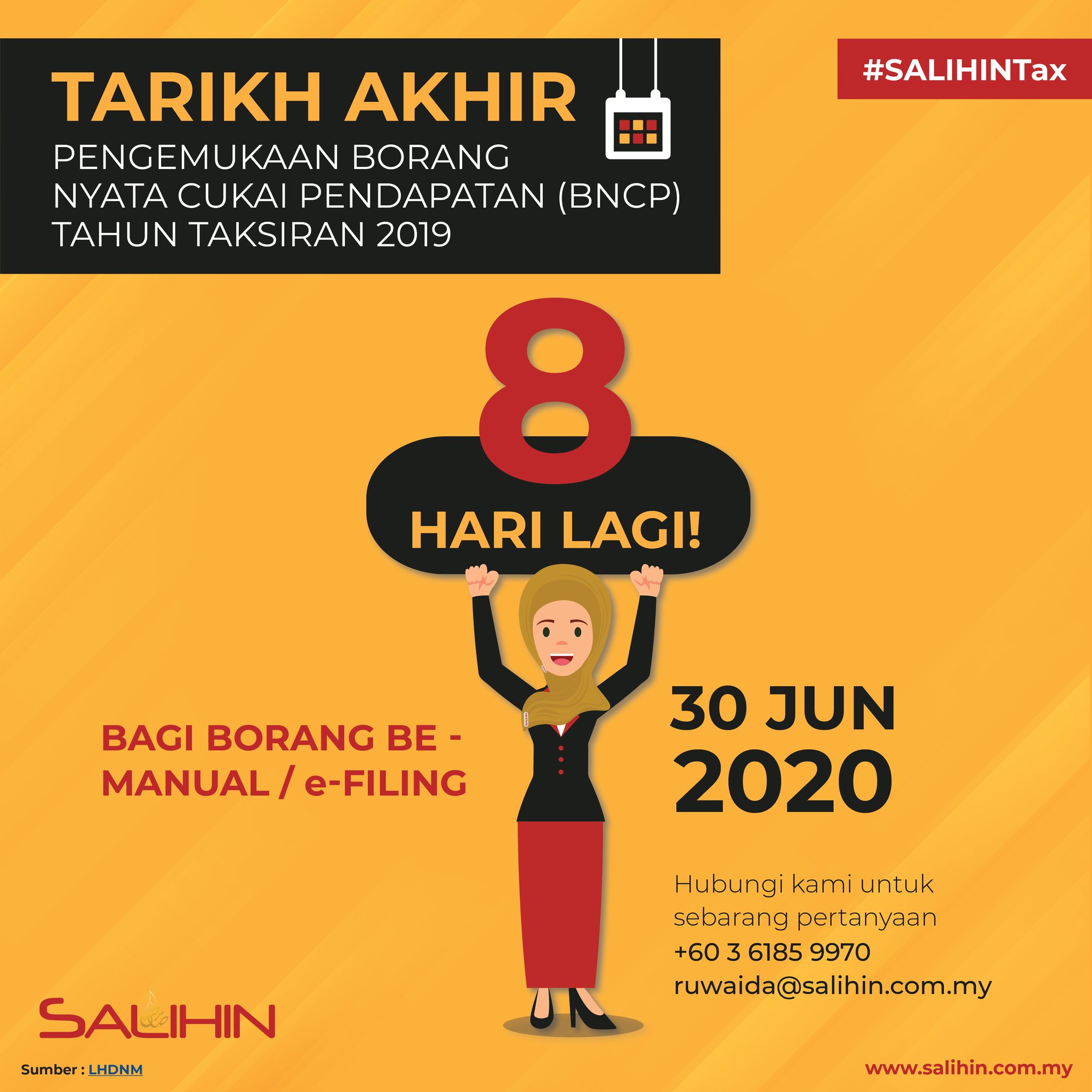 Tambahan masa diberikan sehingga 30 jun 2020 bagi pengemukaan secara e filing pos atau serahan tangan. Penalti di bawah subseksyen 112 3 akta cukai pendapatan 1967 acp 1967 akan dikenakan.